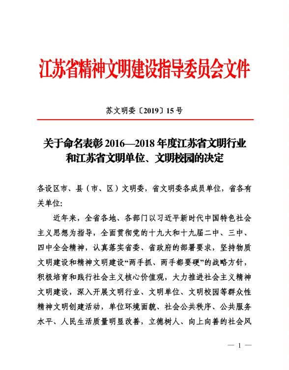 近日,江苏省精神文明建设指导委员会下发了《关于命名表彰2016-2018年度江苏省文明行业和江苏省文明单位、文明校园的决定》,徐州市中心血站再次荣获2016-2018年度江苏省文明单位荣誉称号。