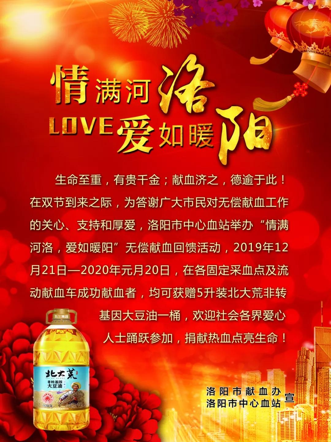 生命至重,有贵千金;献血济之,德逾于此!在双节到来之际,为答谢广大洛阳市民对全市无偿献血工作的关心、支持和厚爱,洛阳市中心血站举办“情满河洛,爱如暖阳”无偿献血回馈活动,