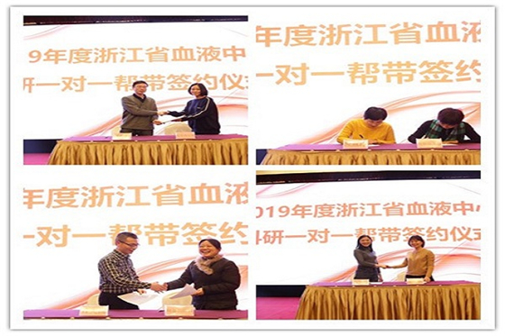 近几年中心科研工作卓有成效,获得2018年度浙江省科学技术奖二等奖、三等奖各一项,2018年浙江省医药卫生科技奖5项。会上,中心领导对获奖项目进行了颁奖。之随后,举行了第二轮科研一对一帮带签约仪式。2019年,中心批准资助8个中心级科研项目,经过双向选择,综合办公室、后勤服务部、制备供应科、献血服务一科等4个项目承担科室分别与刘晋辉、应燕玲、许先国、陶苏丹四位导师签订了“一对一”帮带协议。应燕玲同志申报的项目获得了国家自然科学基金项目资助,实现了“十三五”以来国自然立项“零”的突破,会上她跟大家分享了科研工作的心得。