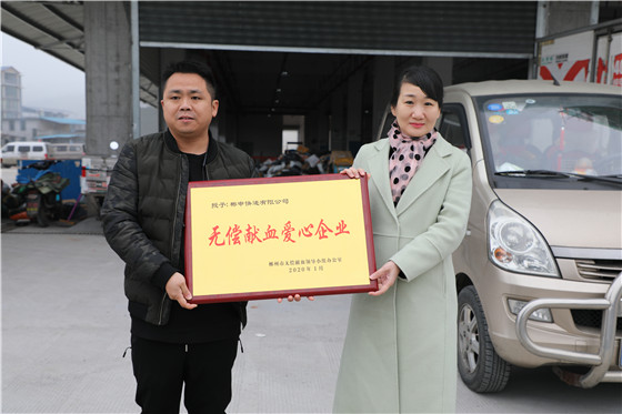 (郴州市中心血站副站长史艾娟为郴州申通公司授牌)