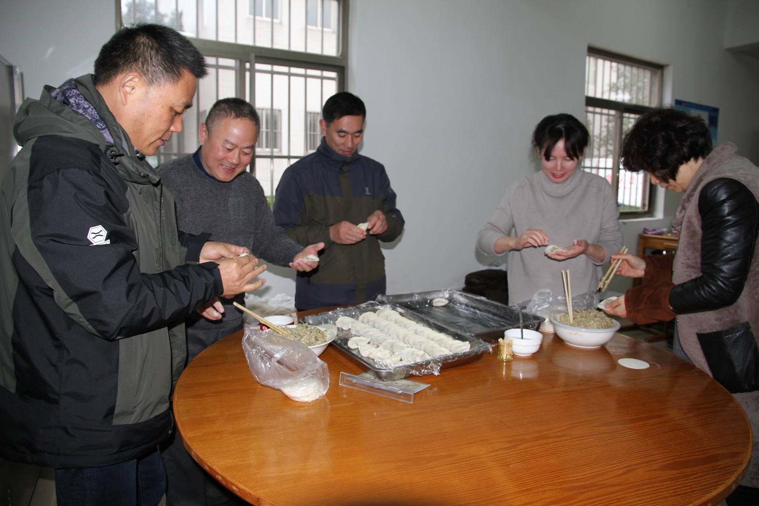 1月8-9日,盐城市中心血站工会在职工食堂开展了“迎新春学厨帮厨”活动。活动现场,大家齐聚一堂纷纷挽起袖口说要“大展身手”,分工协作、相互配合,有的调馅、有的包饺子,有的人边学边包,大家相互切磋着包饺子的技巧,彼此比较着饺子的形状。一个个造型各异的饺子整整齐齐地摆满了桌子,整个食堂年味浓郁,笑语不断,洋溢着浓浓的节日气氛。