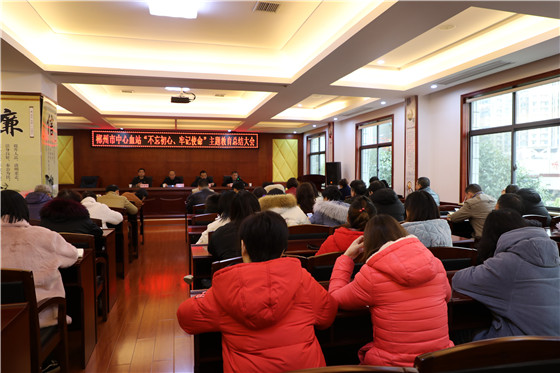 通讯员(李孟玲)1月14日上午,郴州市中心血站组织全体党员召开“不忘初心、牢记使命”主题教育总结大会。血站站长李孟祥主持会议,市委主题教育第二十五指导组副组长杨少丹等2人到会指导。