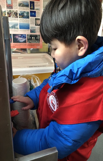1月14日是今年寒假后的第一次小志愿者活动,今天和我们一起传播爱的是来自京东小学二年级的黎梓轩小朋友,去年夏天的他略显腼腆。但是今天的他勤劳可爱,成为了大家的开心果。刚开始,我们让他给献血者倒水,陆陆续续的献血者被他服务的十分开心,忙完一波以后,他闲不住,开始帮忙拿牛奶、分装纪念品,帮护士姐姐传递献血证。