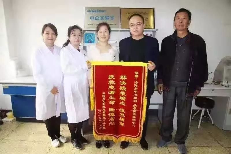 2019年11月1日一大早,洛阳石化医院一名患者家属在输血科主任刘辉的陪同下驱车30多公里,将一面写着“解决疑难输血、技术精湛,挽救患者生命、医德高尚”的锦旗送到洛阳血站工作人员手中。这是一名身患“骨髓增生异常综合症-难治性贫血伴环状铁幼粒细胞增多(MDS-RARS)、阵发性血红蛋白尿(PNH)”多次输血的患者,曾在北京、天津等地就诊,配合性输血一直困扰他们。此次在病情十分危急的情况下,石化医院输血科用多袋血液与患者交叉配血均不相合,将求助电话打到洛阳市中心血站,该站工作人员连夜加班,鉴定出该患者体内含有罕见的不规则抗体,从40多袋血液中筛选出4单位相合的血液,挽救了患者的生命。这是洛阳血站我们服务众多危重疑难患者的一个缩影,也是患者及家属对我们工作的高度肯定。