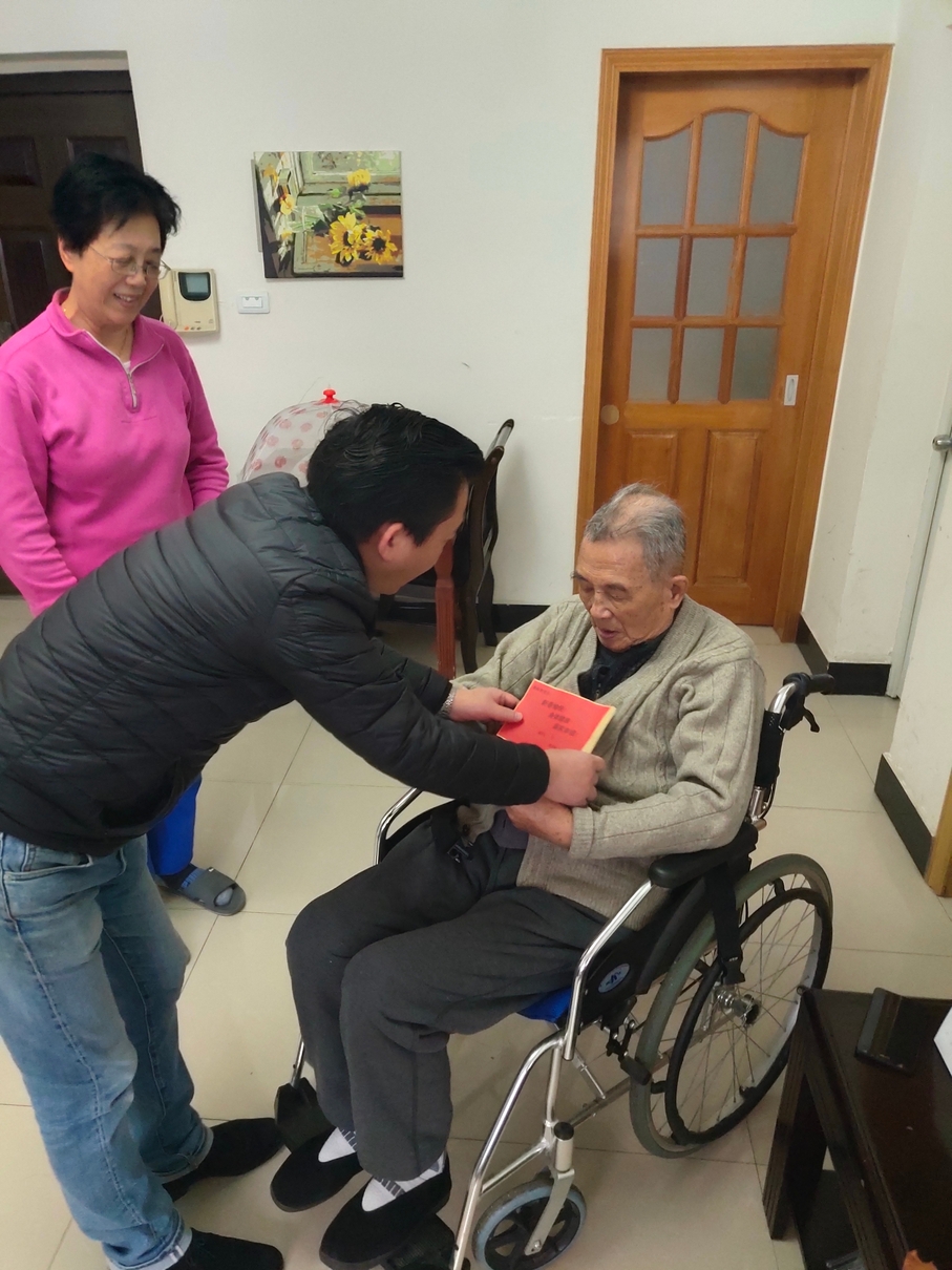 在2020年春节即将来临之际,受省委老干部局、省卫健委党组和中心党委的委托,由离退休科负责人冯建平同志带队,对中心离退休干部职工进行走访慰问,送上节日慰问金的同时向老同志们拜个早年,祝愿他们度过一个祥和愉快的春节,并对离退休党员开展“政治家访”工作。