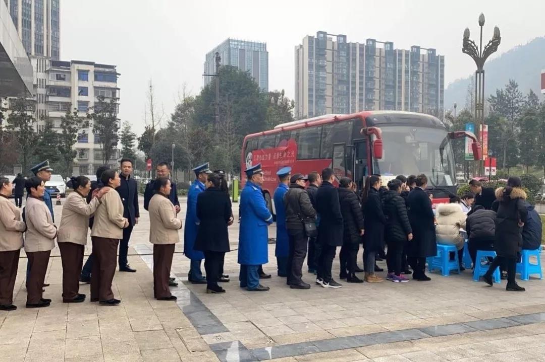 尽管当天寒气来袭,但丝毫没有影响蜀天物业员工们奉献爱心的热情。在血站工作人员的指导下填表登记、测量血压、抽血检测……大家有条不紊地配合完成献血前各项准备工作,排队上车献血。