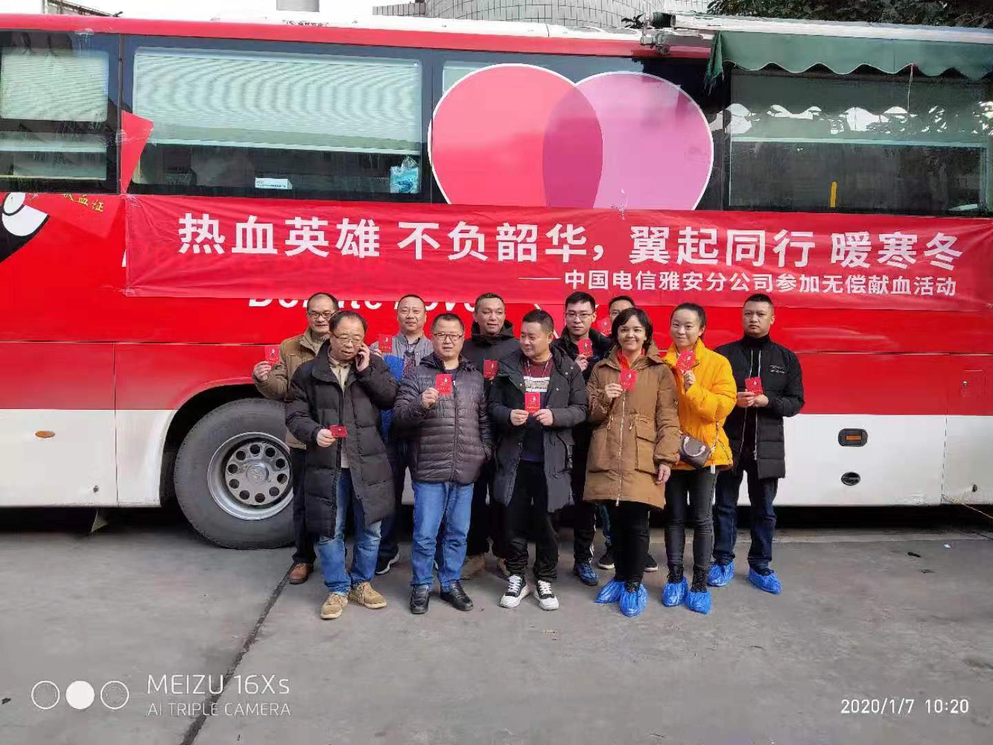 1月7日,中国电信雅安分公司与市中心血站联合开展了“热血英雄 不负韶华 翼起同行 暖寒冬”为主题的无偿献血公益活动。