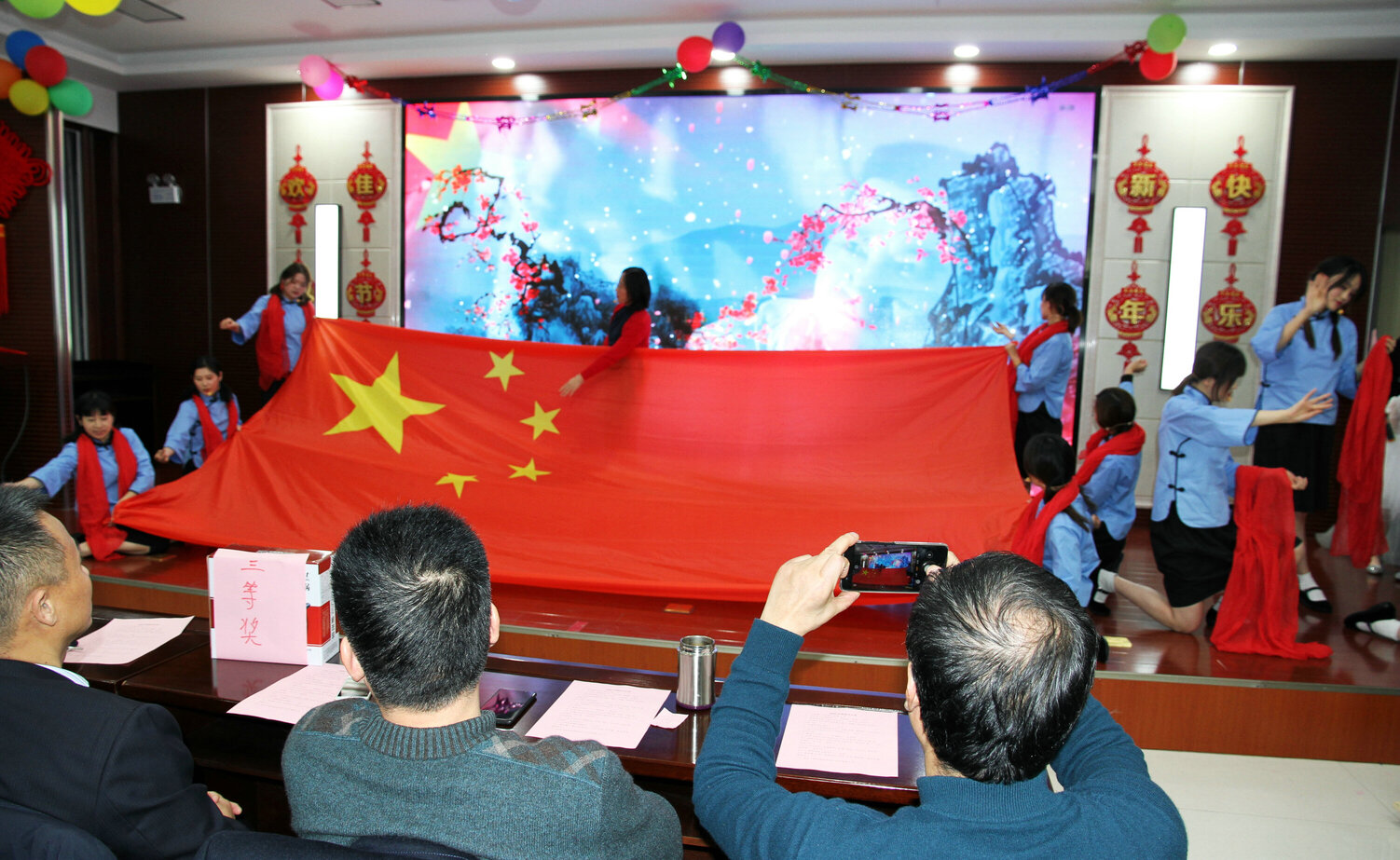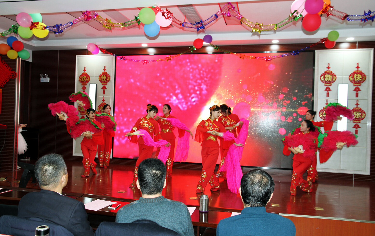 现场表演了歌曲、舞蹈、小品、诗朗诵、萨克斯、小提琴、大合唱等节目精彩纷呈,一个个节目衔接紧凑。盐城市中心血站的14名干部职工以高昂的热情表演了歌舞节目《红梅赞》、《绣红旗》,小合唱《你最珍贵》、葫芦丝独奏《月光下的凤尾竹》和小提琴独奏《梁祝》,演出充分展现了血站干部职工昂扬向上的精神面貌,表达了对党和祖国的热爱之情,节目赢得了现场观众的阵阵掌声。联欢会在大合唱《我和我的祖国》的歌声中落下帷幕,整个会场洋溢着和谐奋进、新春喜庆、欢乐祥和热闹氛围。