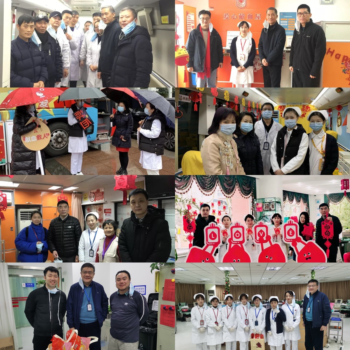 上图:陈强副主任、张晰副主任、林俊杰副主任、朱自严副主任慰问各献血点与工作人员合影