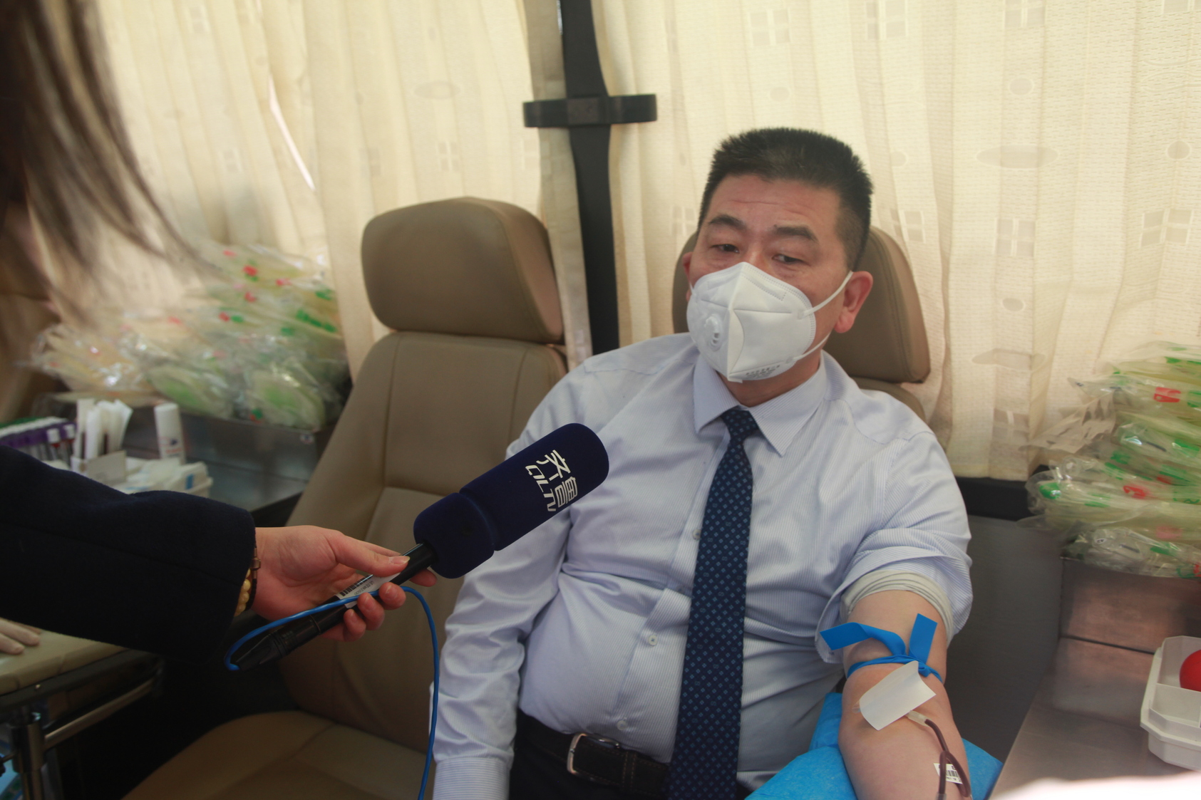 省立三院党委副书记、院长吕涌涛参加献血并接受采访