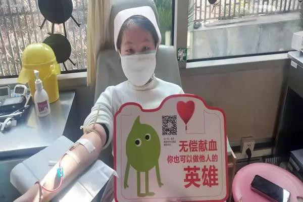 一线采血护士张晓芬在工作间隙献血
