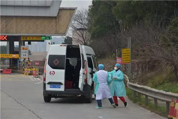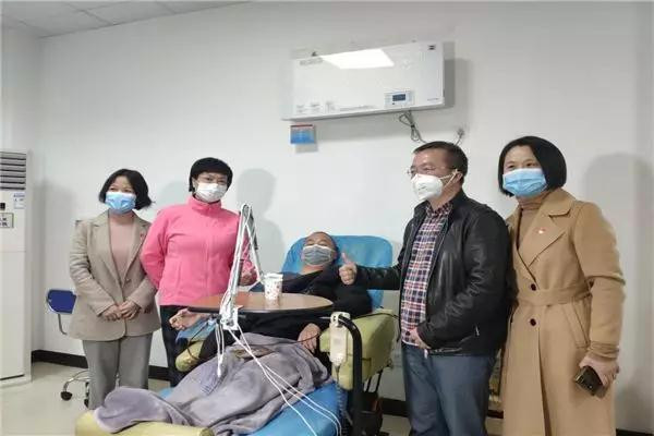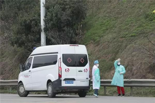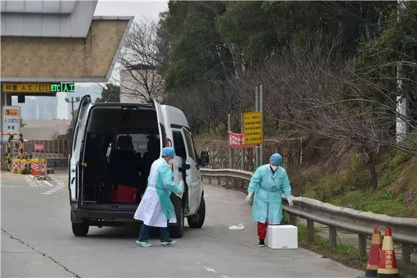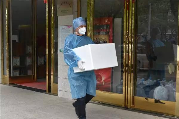 武汉血液中心工作人员挥手示意,对株洲的援助表示感谢