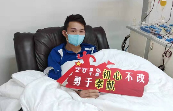 他叫曾刚,他的体重刚刚达到献血标准,面对这场疫情,他选择主动的走上了献血车。