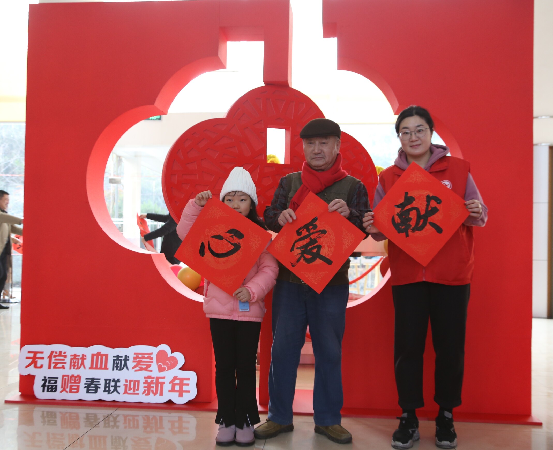 血浓情深,春暖花开。临近春节,为答谢无偿献血志愿者的爱心善举,苏州市中心血站联合双塔街道文化站,共同邀请苏州书法家协会的十一位书法家会员走进血站,现场书写创作,市中心血站站长严伟斌、党总支副书记肖琦、双塔街道领导共同为无偿献血者送福赠春联,共迎喜庆年。