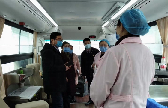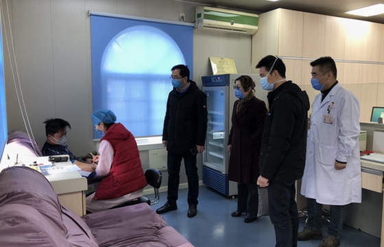 2月5日,芜湖市卫健委主任秦正华、副主任王少华一行莅临市中心血站各献血点督查指导新型冠状病毒疫情防控工作,实地查看在疫情防控工作中献血者、职工防护和血液安全保障等方面的情况,慰问奋战在一线的医务人员,感谢参与无偿献血的爱心人士。