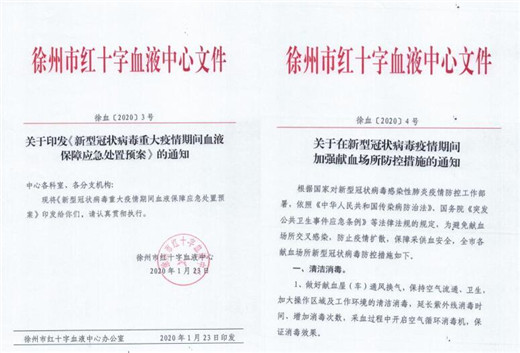 疫情发生后,徐州市中心血站党总支迅速召开紧急会议,研究制定疫情期间采供血应急预案和献血场所防控措施。一是成立疫情期间采供血应急处置工作领导小组,血源招募组、血液采集组和后勤保障组各负其责,分工明确;二是出台《新型冠状病毒重大疫情期间血液保障应急处置预案》,根据应急响应级别启用相应预案,调整工作流程,并配合做好疫情防控工作;三是加强疫情期间临床用血管理,加大对临床用血合理性指导力度,保障疫情期间临床重症患者和急诊患者的医疗用血;四是加强疫情期间献血场所和献血者的防控措施,做好清洁消毒、安全防护、医疗废物处置、健康教育等各项工作,同时加大采血点健康征询力度。
