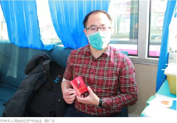 无独有偶,天津市人民医院妇产科医生杨广东,也是看到我中心微信公众号的推送,得知近期血液库存量因疫情下降,便主动在公众号内线上预约好献血时间,并调整好自身状态后献上了一份爱心。