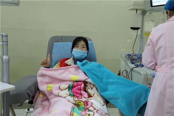 (刘文娇正在献血)