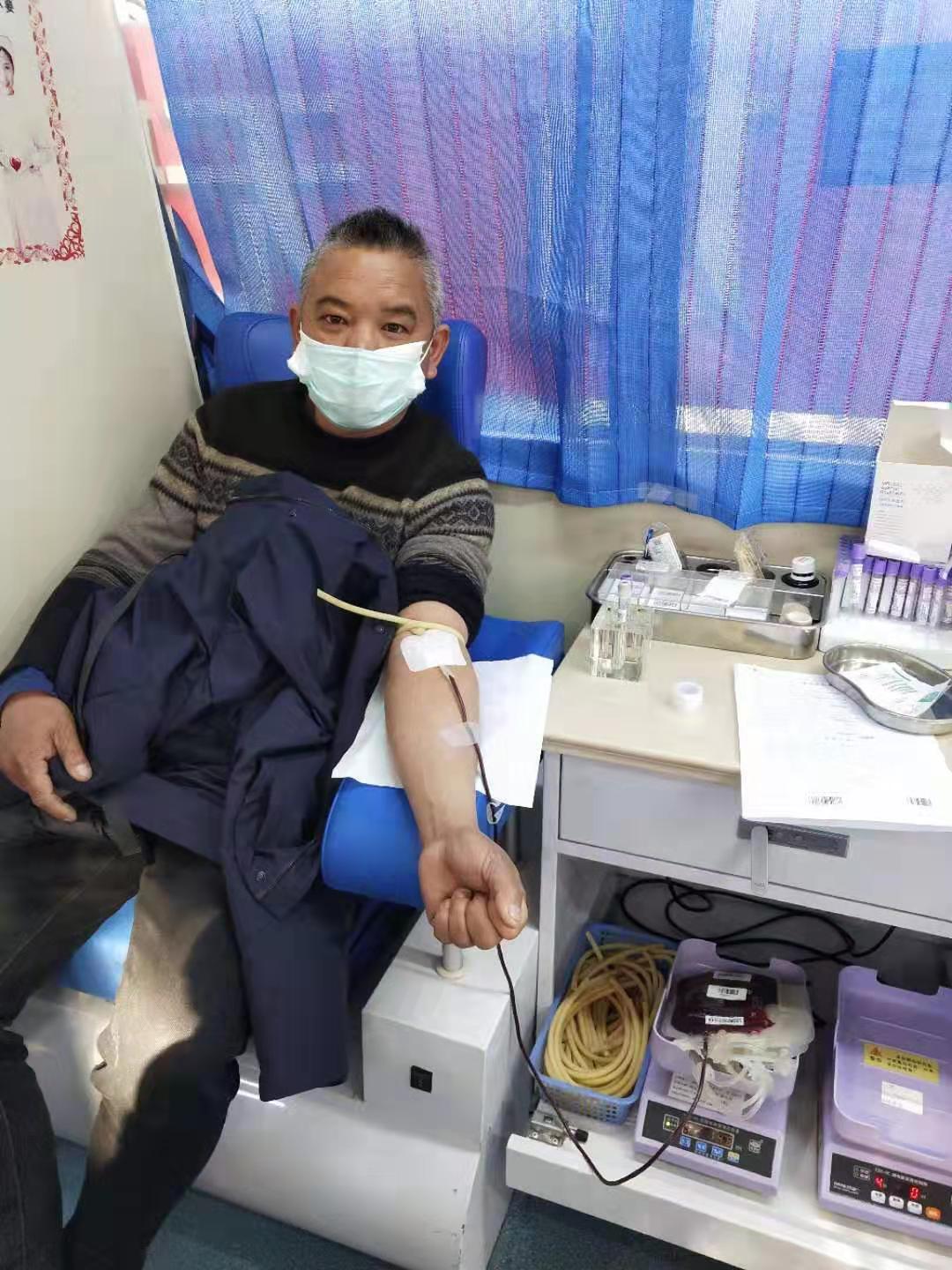 2月11日上午八点多,献血车迎来第一位献血者乐晓怀,他是东台采血点的常客,自2002年参加无偿献血以来已累计捐献全血6500毫升,血小板19个治疗量。他说:“本来血液就紧张,更何况疫情当前,作为无偿献血老队员关键时候带头献血,也算是为抗疫尽把力。”
