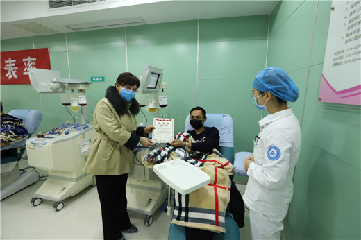 13日献血当天,党员、部分青年职工及无偿献血志愿者按照疫情防控要求,佩戴口罩,保持间距,分批有序捐献血液。市中心血站毕星秀站长前往献血屋,为党员加油,并亲自为参与无偿献血的党员、青年职工及志愿者颁发感谢状。毕站长表示,面对新型冠状病毒感染的肺炎疫情,在全面做好疫情防控工作,有效遏制疫情扩散蔓延趋势的同时,为保障全市急、危重患者的医疗用血,我们积极应对、全力以赴、绝不退缩。不忘初心,牢记使命,全力保障全市人民群众安全健康。毕主任的一番话,鼓舞着在场的每一位党员和志愿者。
