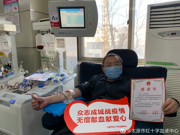太原市红十字血液中心顺利采集第二例新冠肺炎痊愈者血浆