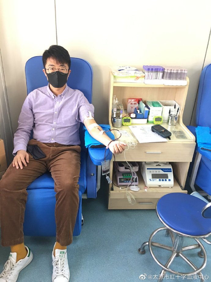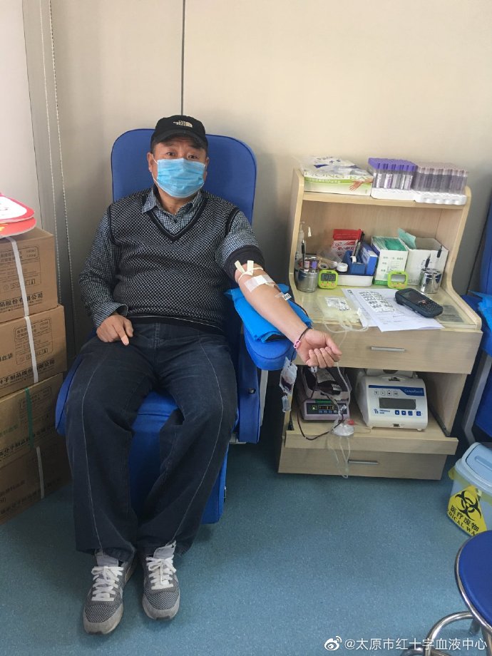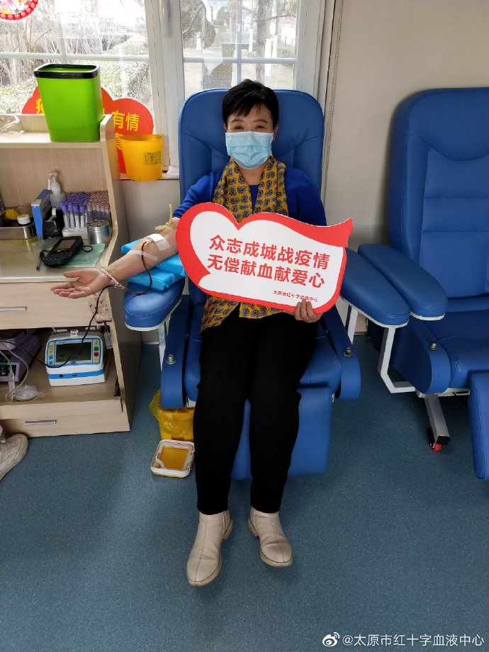 在收到太原市红十字血液中心的号召后,毅然来到献血屋挽袖献血,奉献爱心。