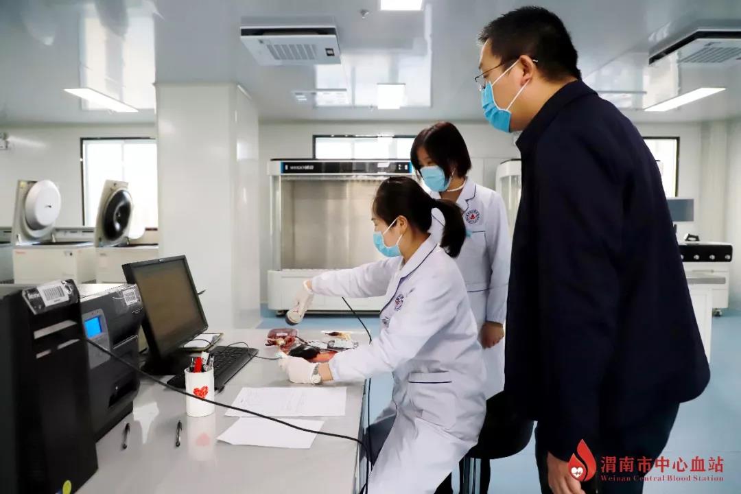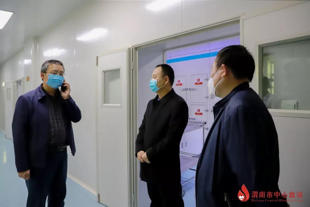 渭南市纪委监委派驻市卫健委纪检监察组组长杨立鹏、市卫健委监察室路甫章主任一行莅临市中心血站督导检查疫情防控期间的血液保障工作。
