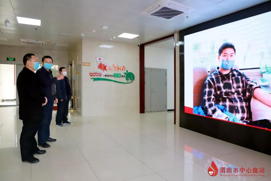 严胜利站长向杨组长汇报了在疫情防控期间,为了保障我市的临床用血需求,市中心血站取消春节假期,及时启动“采供血应急预案”,开通网络和电话献血预约通道,采血分段分流模式开展无偿献血。对采供血场所、献血屋、送血车等严格按照国家相关规定进行消毒,加强对工作人员的防护培训和人员管控,加大对献血者的体检征询力度,对成功献血的献血者开展回访回告,确保献血者和临床用血安全。充分利用渭南广播电视台、渭南日报、血站微信公众平台等媒体发送倡议书、短视频等呼吁广大市民踊跃献血。