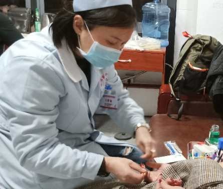 李海霞上门为献血者采血