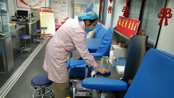 自新型冠状病毒感染肺炎疫情发生以来,为切实有效切断“新型肺炎”的传播途径,控制传染源,保护广大人民群众的生命安全和身体健康,淮安市中心血站积极开展无偿献血工作的同时,把疫情防控工作作为当前头等大事来抓,全站各科室联动,全力以赴,认真做好消毒清洁工作,让每一位市民安心献血,工作人员舒心上班,确保所有工作场所每日坚持消毒,保障临床用血安全、及时、有效。