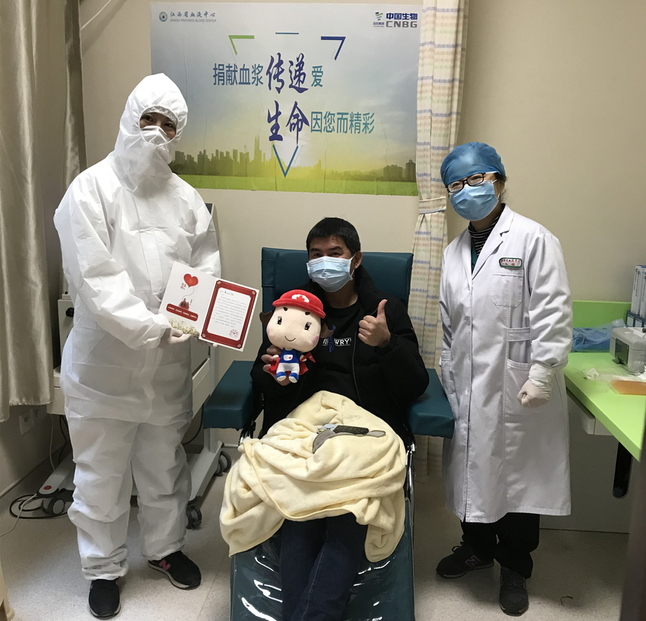 据悉,新冠肺炎康复者姓董,42岁。当天,在江西省血液中心设置在南昌大学一附院象湖院区的血浆捐献点,董先生成功捐献300毫升恢复期血浆,成为江西首位捐献血浆的康复者。他说:“感谢医生把我的病治好,我献血也是尽我一个公民的义务,希望自己捐献的血液可以挽救重症和危重症新冠肺炎患者的生命。”