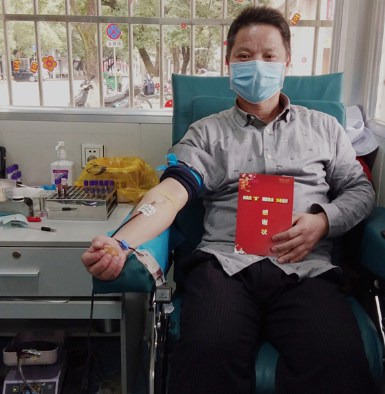 2月14日,李国安先生在进贤献血屋完成了第21次献血,累计献血量8400mL,荣获了全国无偿献血奉献奖银奖。李国安给人的印象是一位很朴素的大哥,他说“献血能帮助别人,同时自己也很快乐!”