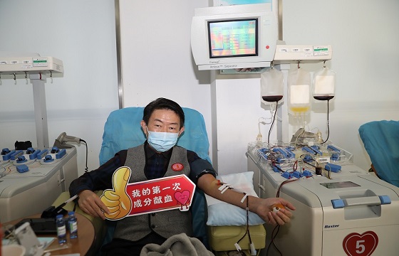 王岐主任口中的同事叫石斐川,是人大的另一位献血达人,他是市人大常委会研究室主任,工作繁忙,却时常为拯救病人捋袖献血,目前已累计献血1400毫升,机采血小板6次。2月4日立春这天,石主任再次成功捐献血小板1个治疗量。石主任说:“有人对献血有顾虑,认为献血对身体有伤害,机采血小板体外循环有污染。那我们人大机关干部就带头献,以身作则,通过自己实实在在的行动,影响带动周围的人。选在立春献血,也是取春天生机勃发、生生不息之意,希望我们尽快取得抗’疫’的胜利,春暖花开的时候,我们的医护人员都凯旋而归,我们的人民都健康平安,我们的社会都恢复正常的秩序。人人都加把劲儿,做力所能及的贡献。”