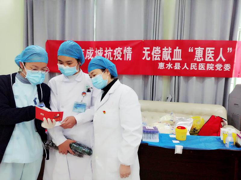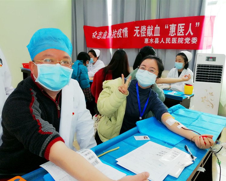 2月20日,在惠水县人民医院党委的高度重视和精心组织下,全院干部职工发起了一场“众志成城抗疫情,无偿献血‘惠’医人”的团体无偿献血活动,当天成功献血105人,共计28800毫升,及时助力了非常时期的临床用血需要,同时充分展现了医护人员无私奉献的爱心和战“疫”必胜之决心。