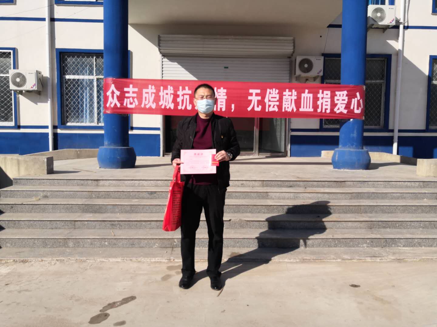 新冠肺炎疫情发生以来,为抗击疫情,保临床供血 ,2月18日,单县杨楼镇党委政府发出倡议,号召全镇广大党员干部积极行动起来,参与无偿献血。单县杨楼镇党委书记王军华,镇党委副书记、镇长王晓玉,镇党委副书记职国庆,镇派出所所长王浩积极带头参加无偿献血。