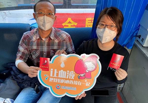 曲悦先生,爱人是胸科医院的医生,得知血库告急,爱人毫不犹豫地派老公过来献血,并且说:你们需要多少,就让他献多少。