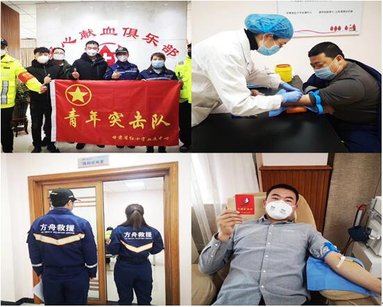 2月19日,甘肃省红十字血液中心青年突击队、省无偿献血志愿者服务队,联合甘肃方舟救援志愿服务队、安宁区十里店派出所干警,开展无偿献血活动。