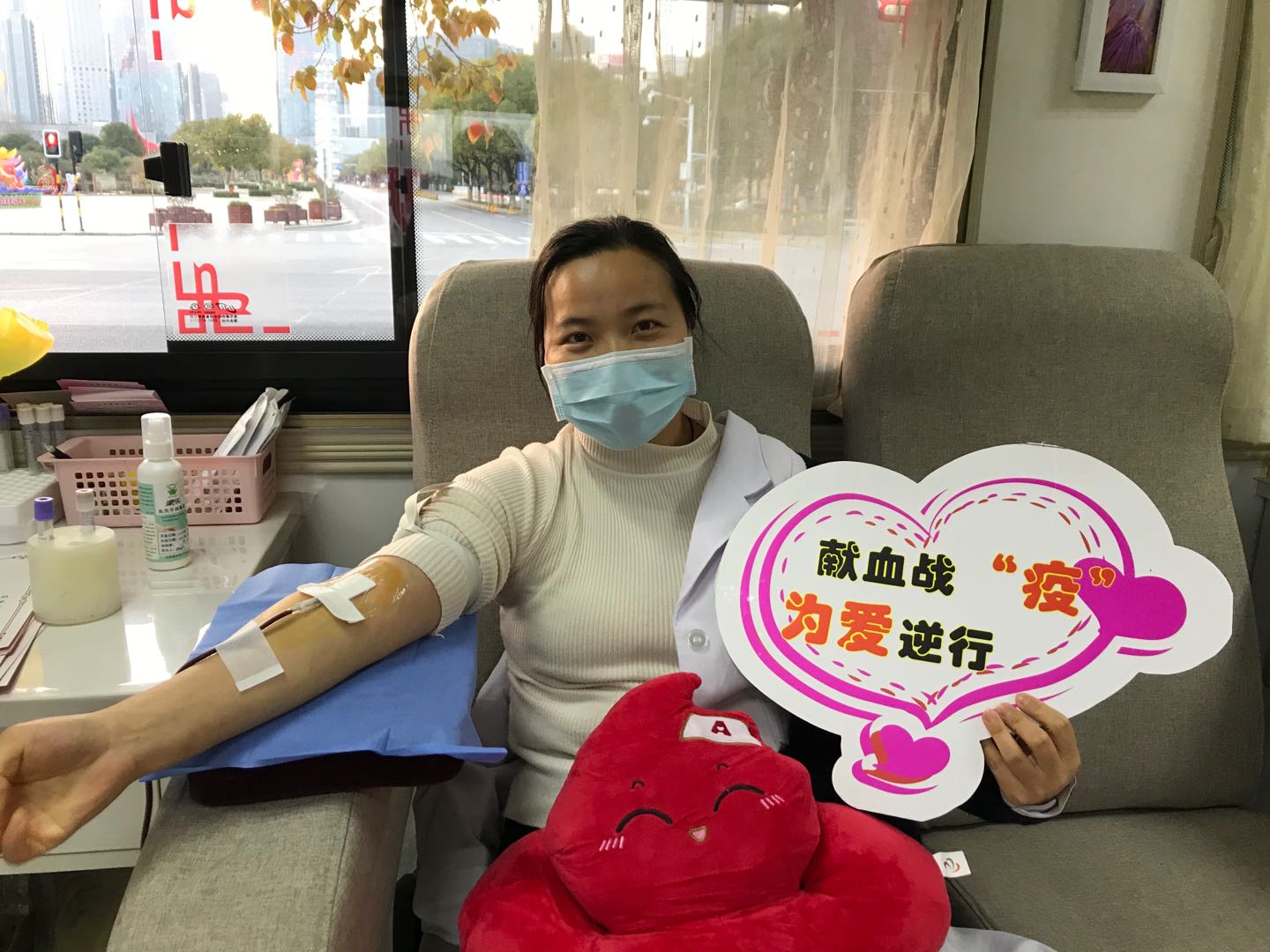 章一凤也是我站红谷滩万达、秋水献血点的一名护士。献血间隔期刚满半年的她,昨日也在工作间隙挽袖献血。献血结束刚刚拔针,正好来了一位献血者,她来不及按压好针眼,让同事用用止血绷带迅速为自己扎好,立即投入工作直至傍晚下班。“如果武汉需要我,我愿意第一时间去一线抗击疫情,为国出力”!这是她最近常常挂在嘴边的一句话!
