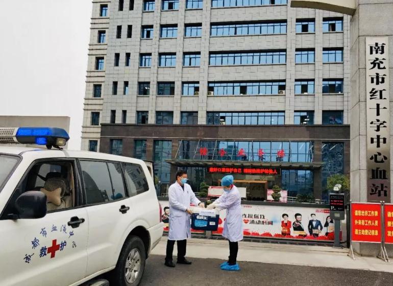 在四川省卫健委统一调配下,成都市卫健委安排成都市血液中心紧急行动。2月20日上午9时在紧急完成血液调配手续后,成都市血液中心储血供血科副科长张永鹏随急救送血车出发前往南充,将3袋共计300毫升新冠肺炎康复者恢复期血浆运送至南充市中心血站。11时5分急救送血车到达南充市中心血站,在完成紧张有序的血液交接入库、复核后,南充市中心血站立即进行血液出库登记。11时25分川北医学院附属医院120急救车将3袋血浆紧急送往医院输血科。13时30分经省级专家组会诊评估后,决定使用新冠肺炎康复者恢复期血浆治疗该院一名危重症新冠肺炎患者。据悉该名患者2月7日因病情加重转入川北医学院附属医院ICU。血浆到达输血科后,立即开展交叉配血及血浆复融等系列工作,随后第一时间送至医院的重症监护室,13时30分患者开始接受新冠恢复期血浆输注治疗。