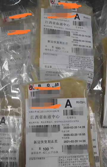 据统计,截止2月23日,江西省血液中心已累计采集5例新冠肺炎康复者恢复期血浆,共计1600毫升。经检测合格,制备好的血浆已全部发往南昌大学一附院,用于救治重症和危重症新冠肺炎患者。