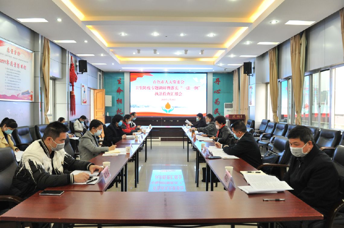 图为:百色市人大常委会卫生防疫专题调研暨落实“一法一例”执法检查汇报会现场