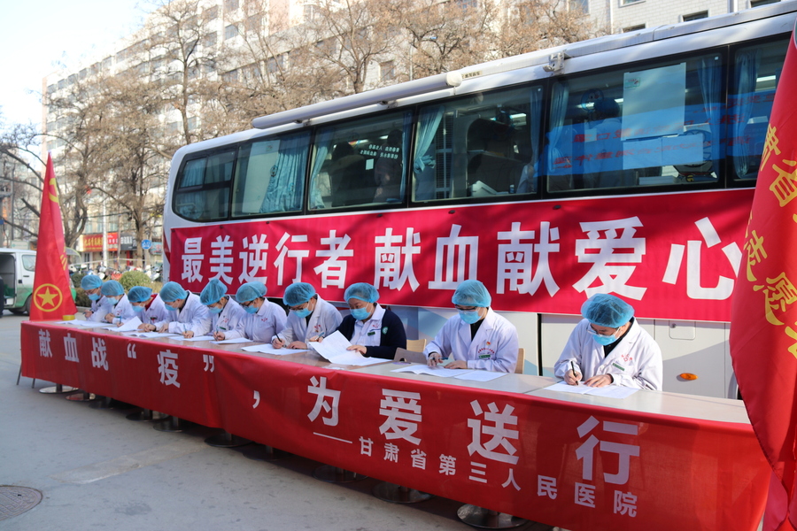 2月17日,为开展以“献血战‘疫’为爱送行”为主题的无偿献血活动,迎着清晨日出的曙光,甘肃省红十字血液中心的献血车缓缓向省第三人民医院门诊部驶去。自献血倡议发布以来,医院全体党员、团员、青年志愿者的以饱满的热情积极响应,部分社区群众也踊跃报名,近百名人员报名参加此次献血活动。