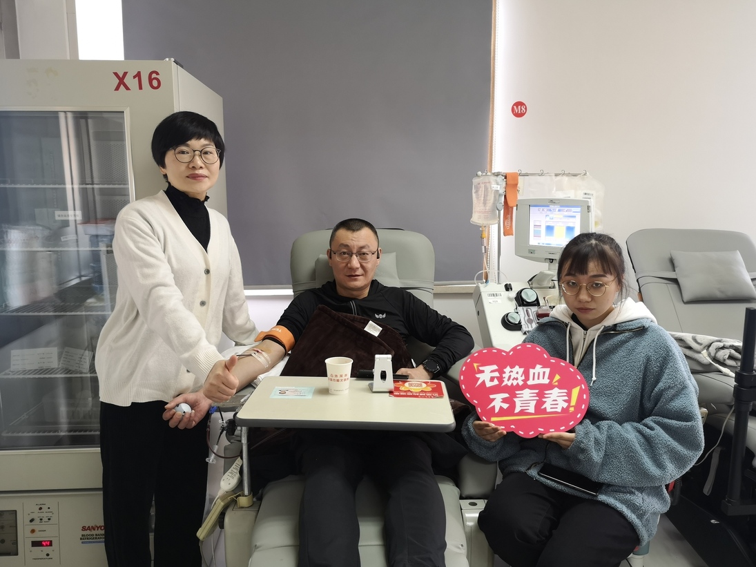 对于妻子的工作,丈夫谢明一直都很支持,参与无偿献血也是多年以来他所坚持的事。2010年,谢明在乐清虹桥街头完成了人生中的第一次献血,后因调到瑞安农商银行工作,便经常在乐清和瑞安两地进行献血。与此同时,他还积极组织银行员工开展无偿献血活动,动员符合条件的年轻员工和他一起加入献血的行列。对此,谢明解释说:“我们不仅要为经济发展作贡献,还要承担起应尽的社会责任,履行社会义务。”受妻子影响,他对无偿献血的相关知识从一无所知到目前有了一定了解,他知晓机采血小板与全血献血间隔一般不少于4周,为了尽可能为保障防疫后方的临床用血供应出一份力,1月12日捐献过血小板的谢明,在2月12日再次前往献血服务点捐献了全血。谢明说:“今年春节期间,我爱人一直在加班加点,血液库存紧张的问题也一直困扰着她,我也都看在眼里,想着自己符合条件,就多献几次,尽可能帮忙解一下燃眉之急。”