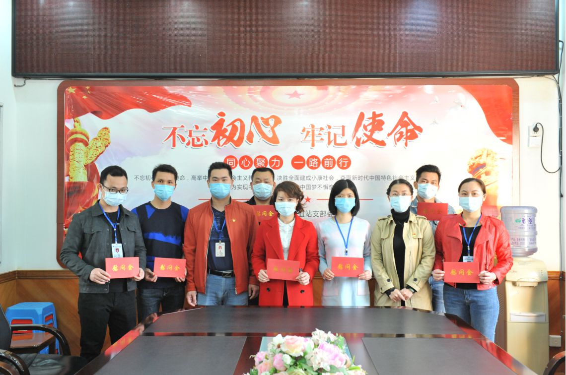 2月25日,百色市中心血站领导班子在六楼小会议室慰问疫情防控一线工作人员和志愿者。