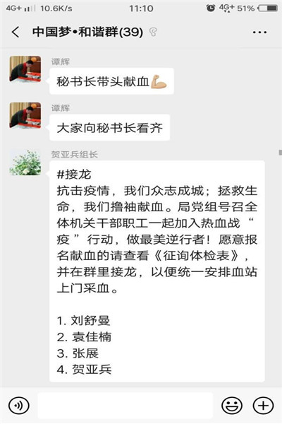 近日,在株洲市信访局内,因一条短信引发了一场“热血战疫”行动报名接龙。2月28日上午,该局“捐献热血 助力抗疫”无偿献血活动启动,作为我市首个在抗疫期间参与团体献血的行政机关单位为社会做出了表率。