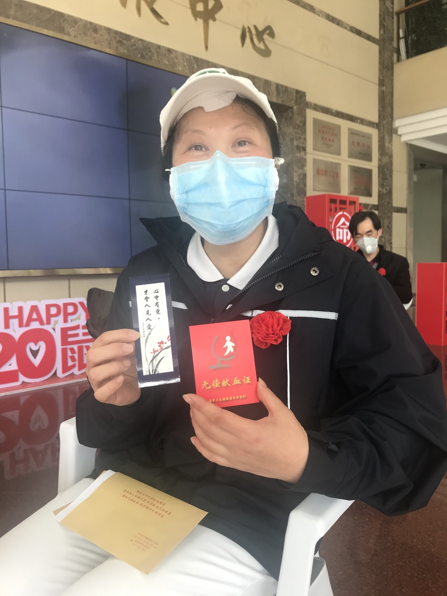 “‘心中有爱,才会人见人爱。’我今天的静思语太有意义啦!因为每次小志工为献血英雄表演时,我说‘心中有爱’,小志工们就会很自然地喊出‘人见人爱’哦!”献血400毫升后,坐在休息区的胡颖老师举起了手中的静思语笑眼盈盈地说。