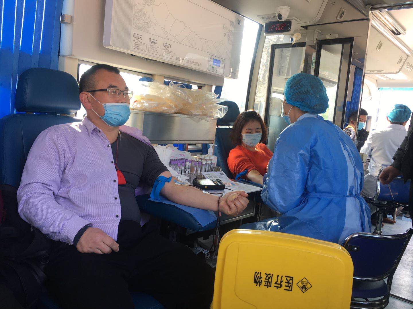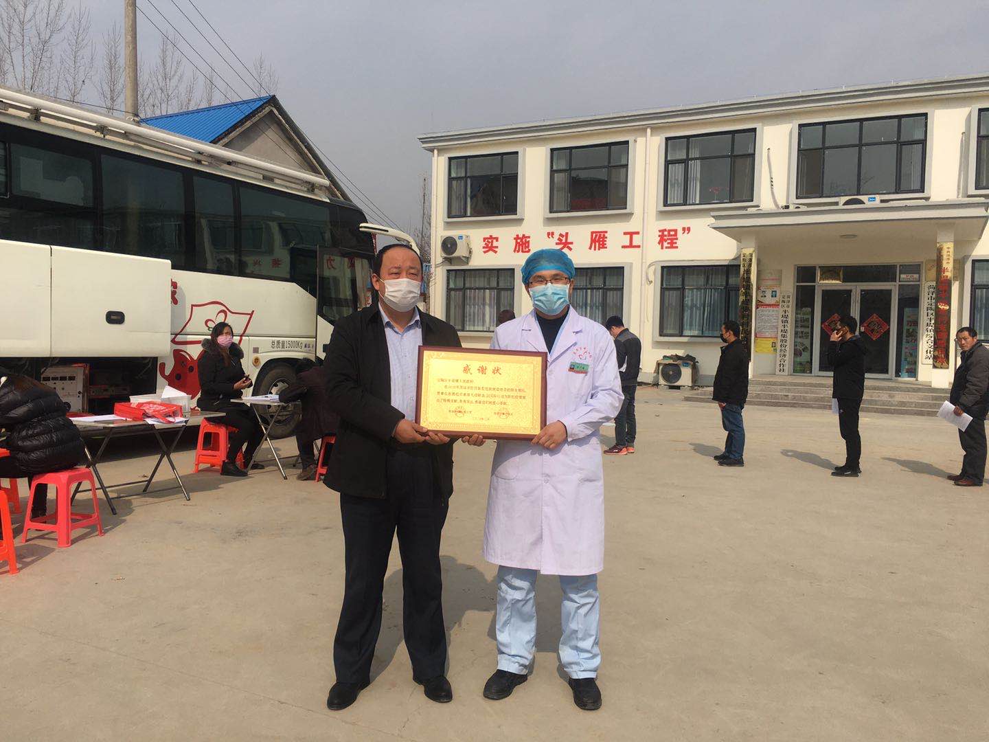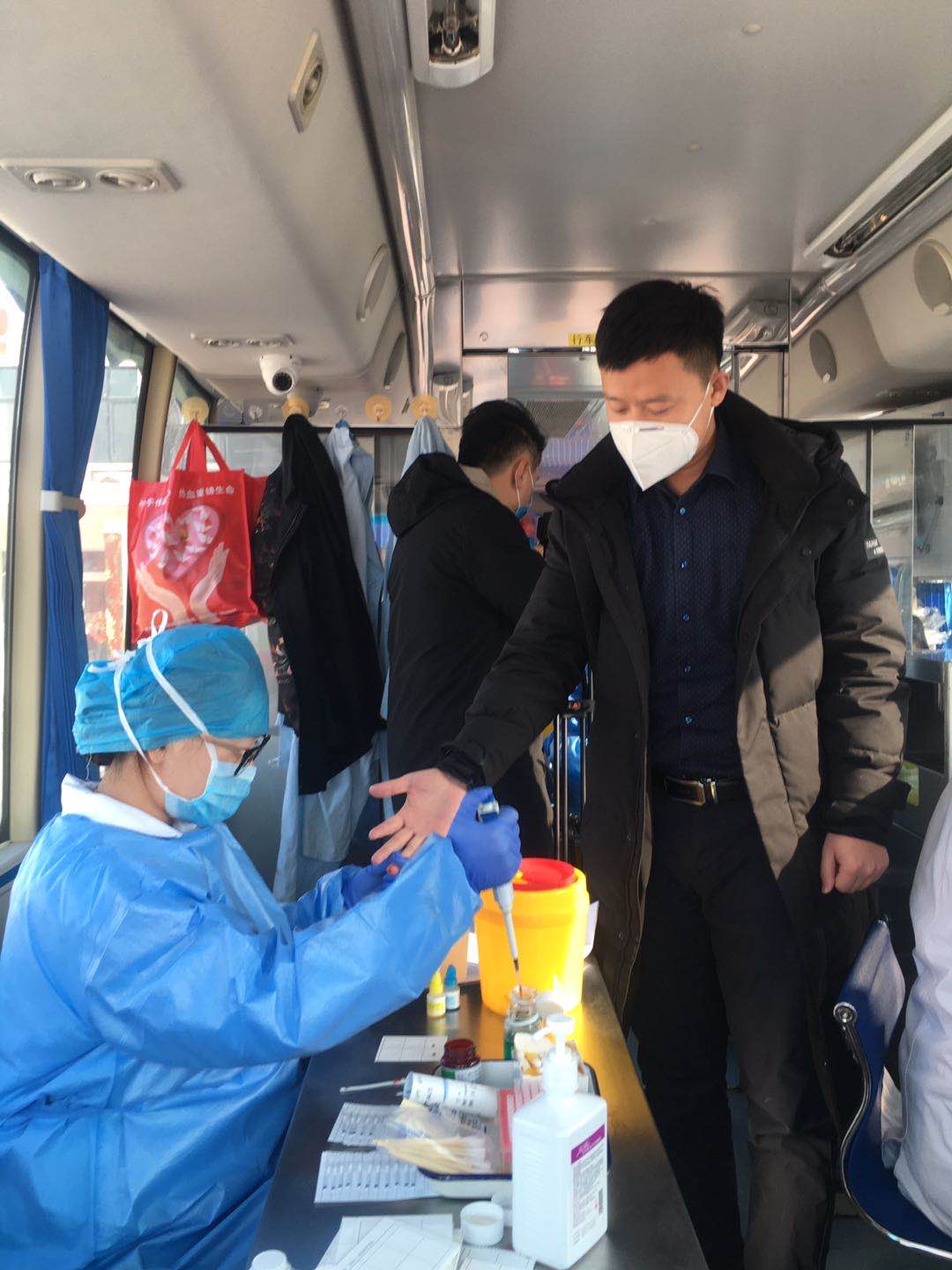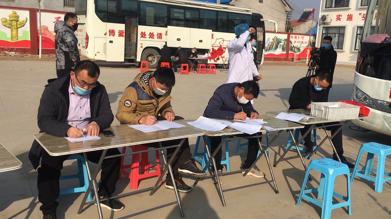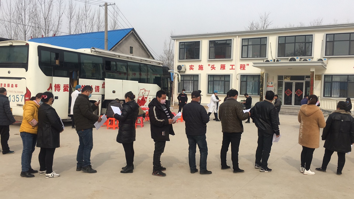在定陶区半堤镇半堤集村的文化广场上,两辆献血车和十余名工作人员在紧锣密鼓的忙碌着。半堤镇党委副书记毕国胜,与马常学、李兴新、李凯、高燕超等20余名干部早早地在广场上等待。踊跃献血的群众在做好有效间隔和防护的情况下,在两辆献血车前都排起长龙。他们在工作人员的引导下,依次测填表、测体温、测血压、化验,一切井然有序。女干部潘鲁华,起初对抽血有点胆怯,当带着爱心和希望的鲜红血液缓缓流进储血袋时,脸上洋溢着欣慰的笑容。张楼村村民赵自柱和张东燕是一家人,当听说有献血的消息后,第一时间带领孩子赶到了现场。张东燕说:“带领孩子来献血,虽然孩子献不了,但也是对孩子进行爱心教育。全家献爱心,同心战疫情,很有意义。”好多家庭都是全家来献,场面十分感人。“我是第一次献,原来这么多步骤,让我觉得十分严肃,还有了一种上战场的感觉,希望湖北的疫情早日结束。现在疫情严重,血液需求量大,我们大家都愿意奉献一片爱心。”张楼村群众张正国说。