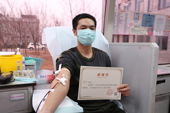 这是收费二班李飞第二次挽袖献血,在此之前,也是了解到血液紧缺,于是毫不犹豫的奉献了热血。他说:“自己即是班长又是党员,当祖国需要我的时候我就要挺身而出。”