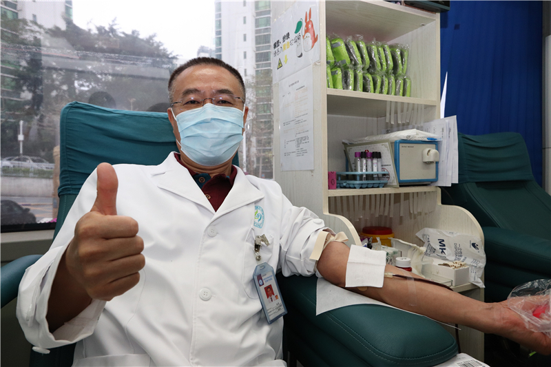 活动现场,见到了个老熟人——放射科的杨涛主任。20年前就开始献血的他,每次献血都是捐献全血,平日里只要3个月间隔期一到,就主动出现在了总部的献血大厅,这次是他第42次献血,持续的奉献爱心真是让人敬佩!