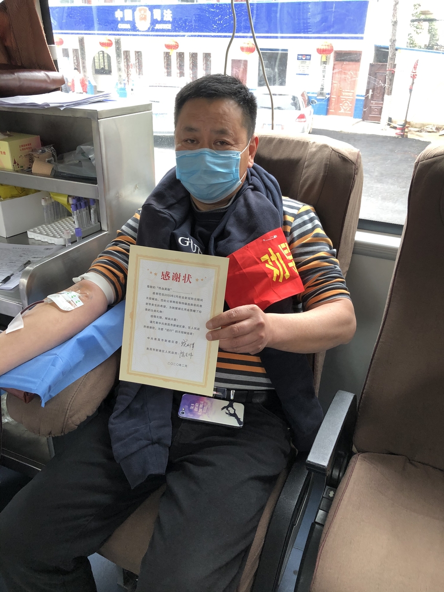 申仪虎是血站职工的家属,收到支援湖北奉献热血的通知后,积极响应号召,第一时间报名无偿献血。